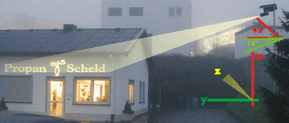Beispiel einer Goboverzerrung mit zwei Koordinatenwinkeln